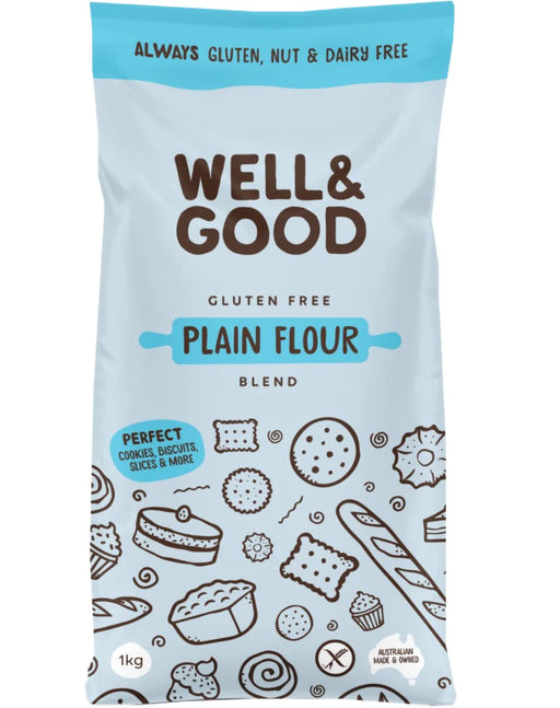 Well & GoodGluten Free Plain Flour in Economical 1kg Pack! Well and Good’s gluten free plain flour is the answer for all your gluten free baking creations an...