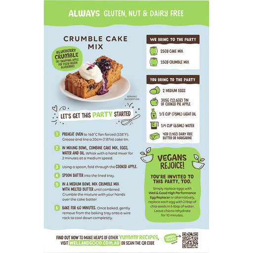 Well & GoodWinter baking is easy with our newest multi-purpose crumble cake mix; apple is a favourite amongst our clan, but pear, rhubarb, or berries will al...